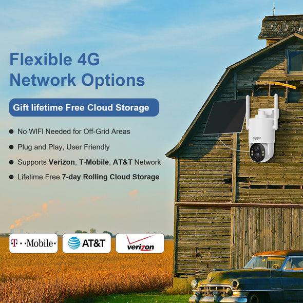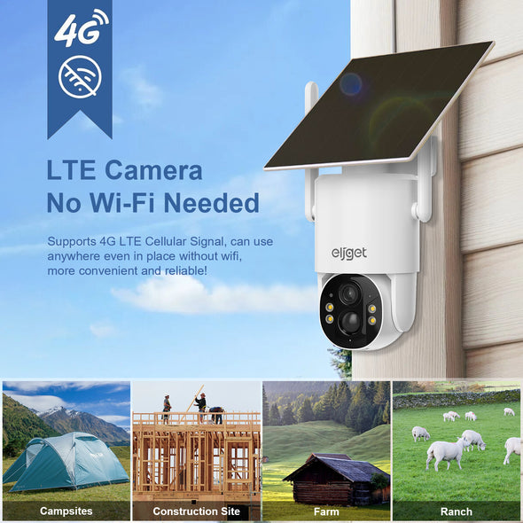 Our 4G LTE security camera operates anywhere in the U.S. without WiFi, such as backyards, gardens, campgrounds, construction sites, warehouses, farms and ranches.