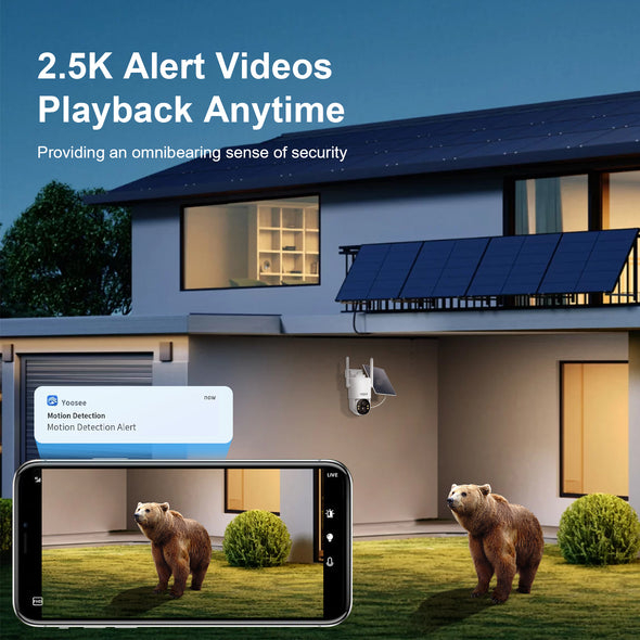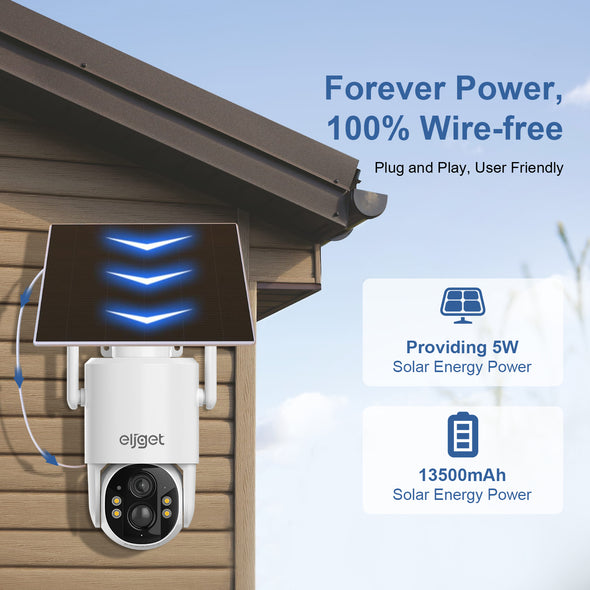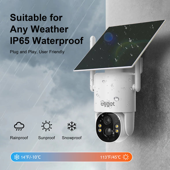 This surveillance camera is solar powered for outdoor use and uses a 4G LTE data connection network to share a live display with your mobile apps. Camera with Spotlight, 2.5K Ultra HD Display, Color Night Vision, Two-Way Audio, IP66 Waterproof, Solar Powered Continuous Charging, No Wifi Required (Wifi not supported).